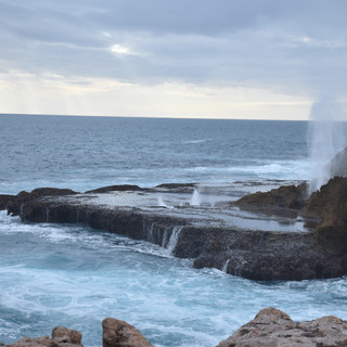 Danach fuhren wir raus aus der stadt, wir wollten die blowholes sehen. 70Km noerdlich an der kueste waren durch wasser und wetter loecher in den klippen, sodass die wellen durchgedrueckt wurden und wie geysire in die hoehe schossen. Es sah recht interessant aus. Dann ging es noch 10km weiter zur quobba station. Einer farm, die uns einen platz zu campen und duschen fuer 15$ gab. Man erzaehlte uns von walen, die am morgen da waren, also dachten wir schon, wir haetten sie verpasst. Wir sassen am strand und sahen uns den schoenen sonnenuntergang an. Tolle gegend.